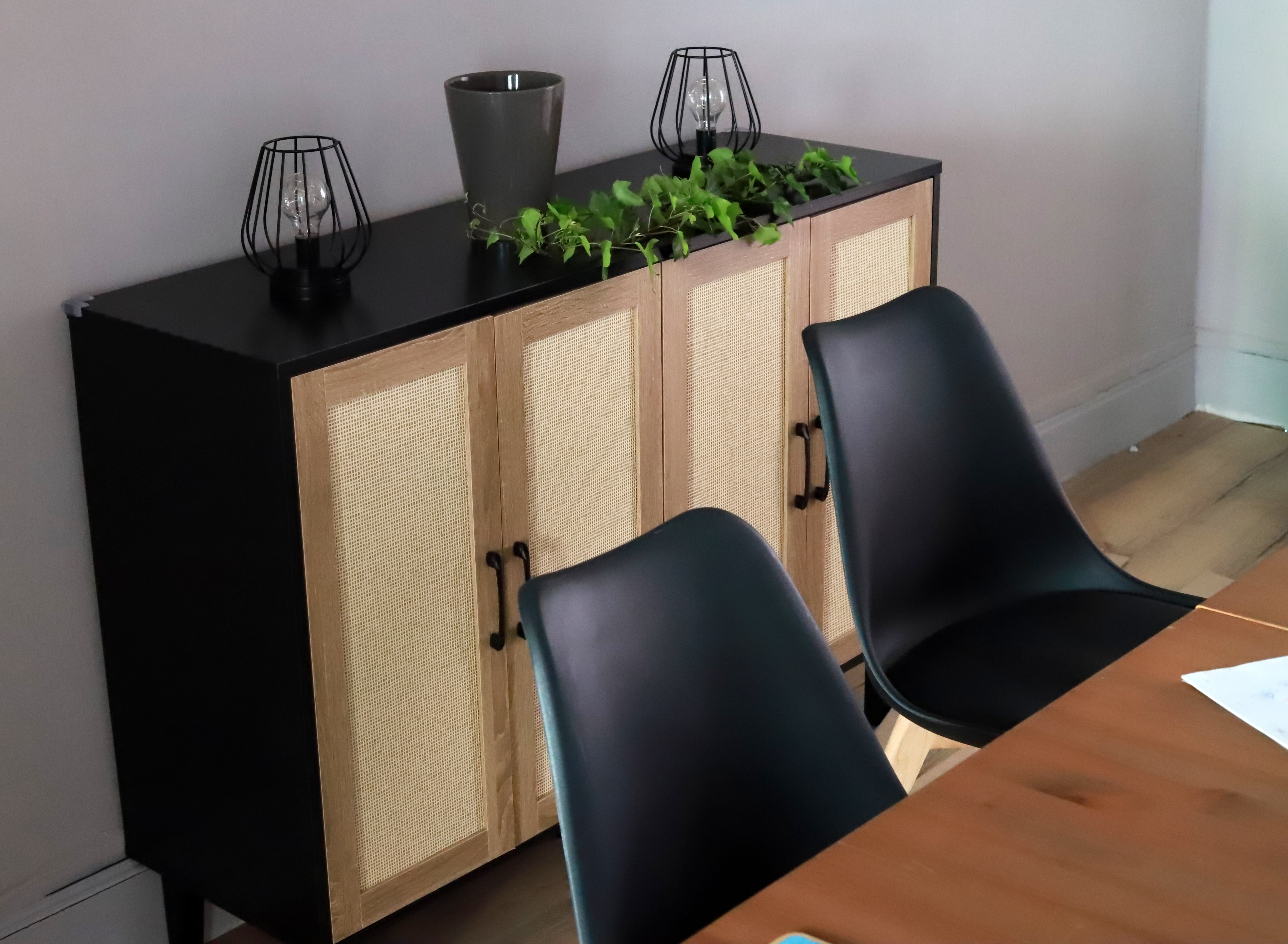 Meuble de Rangement en Rotin et MDF, Buffets Haut Aspect avec 4 Portes sur Salon, Chambre, 127 x